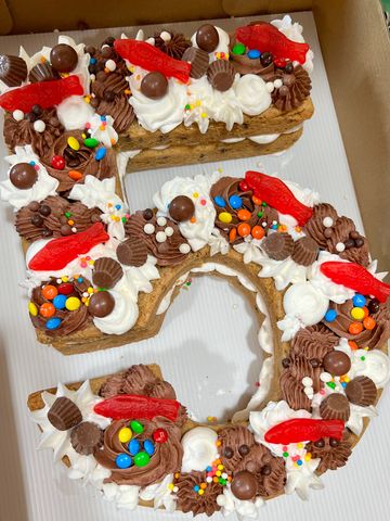 Shown is a Double Layer Chocolate Chip Number or Letter Cookie..