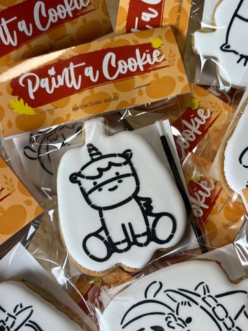 Paint your own cookies! Paint brush, paint pallet card (with 4 colors), and instructions all included in the individual heat sealed cookie package. All you need is a dab of water! Great for Birthday parties, ANY holiday, stocking stuffers, prizes, treat bags or just for fun at home! Fun for EVERY age 1-100!